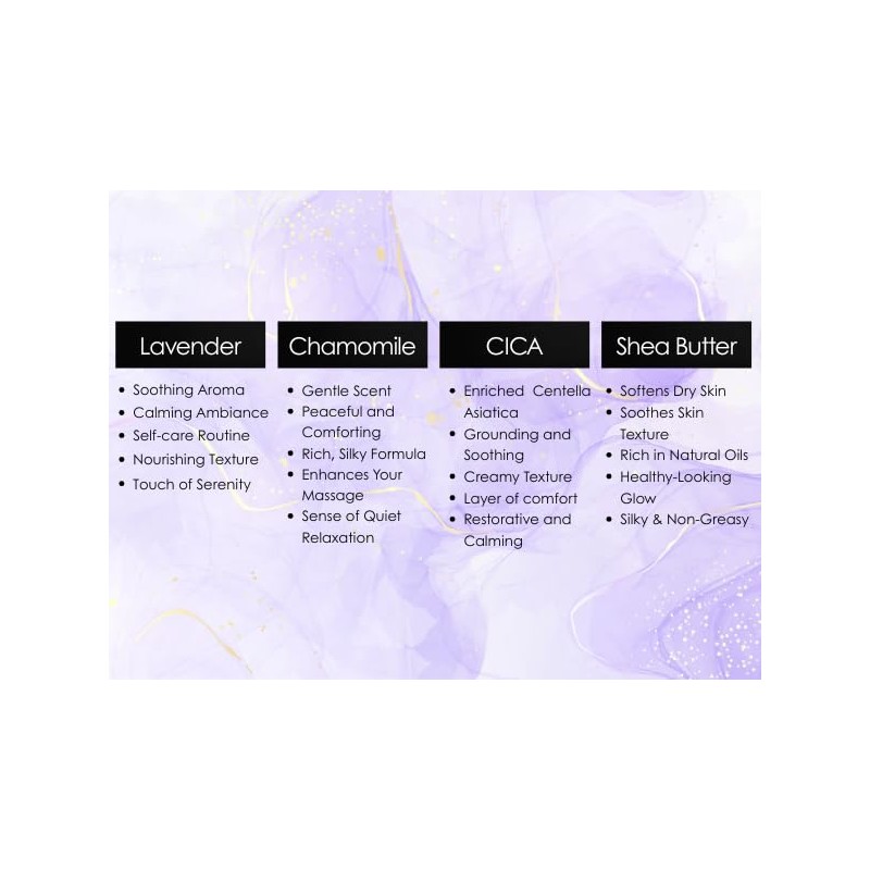 Essentially KateS Lavender + Chamomile + CICA Massage Cream Lotion 4 Fl Oz - Medium Glide - Calming, Soothing, Relaxing, Hydrating.