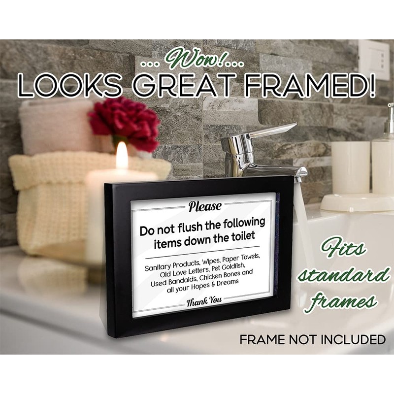 - RENTAL HOME NECESSITIES - Our septic sign for bathroom has a clear and easy-to-read design with high-resolution waterproof ink. Mount or lean against the wall or place in an easy-to-find 4"x6" frame to match your décor.