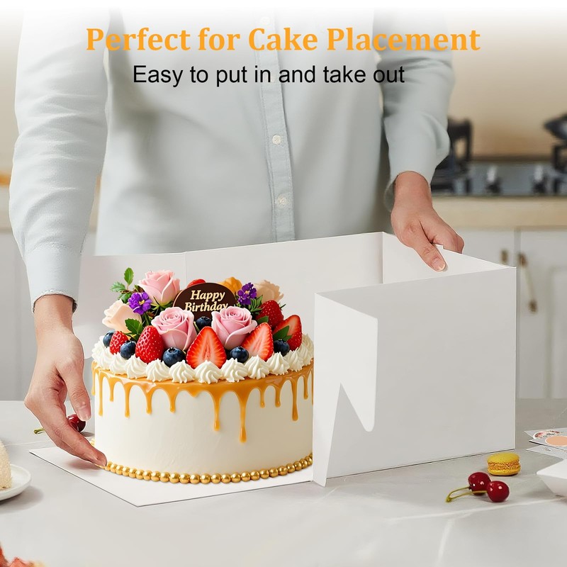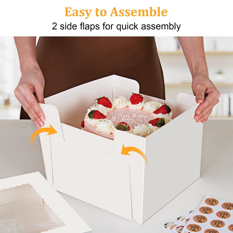 - Easy to Assemble and Store: Our 10' cake box is pre-folded for simple assembly, you can assemble it just seconds without any tools, save time save effort. When not in use, the 10inch cake box can be folded for storage and organization, saving space.