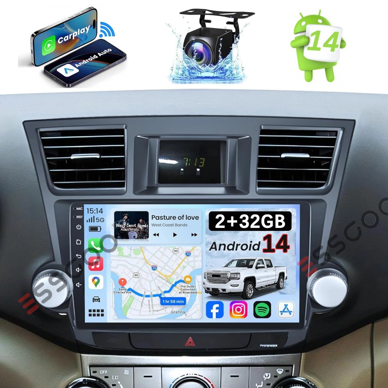 10.1 Inch Android 14 Car Radio For Toyota Highlander 2008-2013: The Android car radio with 10.1" 1280* 720 HD capacitive touchscreen, 2GB RAM and 32GB ROM allows you to download your favorite apps and videos, so driving is no longer boring. No extra frame, no cable change, plug and play.