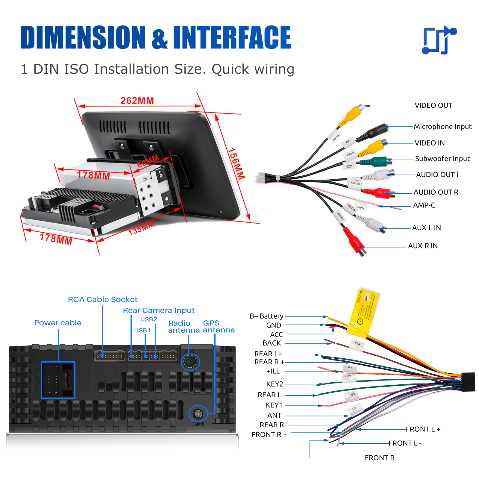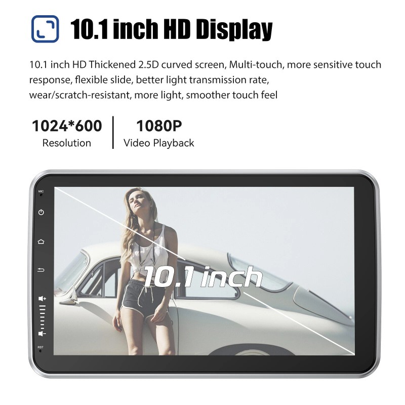 【10.1" Android Vertical Rotatable Car Stereo】This single din car stereo with high-definition 10.1 inch 2.5D tempered glass mirror touch screen,and which can be rotated by 180°.You can adjust the screen manually to make it display vertically or horizontally. Give you the most comfortable visual and touch experience.This car radio installation size is: 178(L)* 50(W)*145(D)mm.Please confirm whether the size is appropriate before buying.