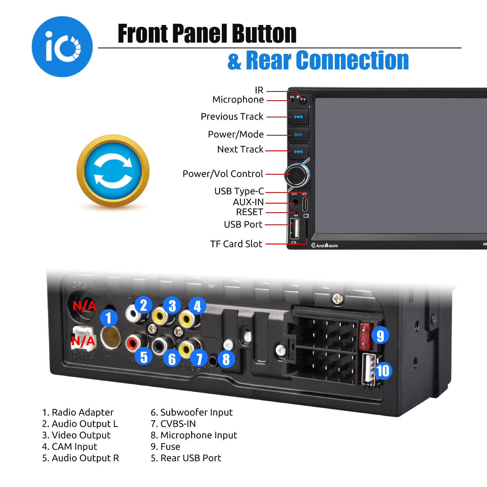 【Reversing Image Function】After connected with the rear camera, you can see the image on the radio screen through the rear view camera when reversing your car. The 7-inch touch screen will automatically display the reverse image once you pull in reverse. Make your daily reversing safer.