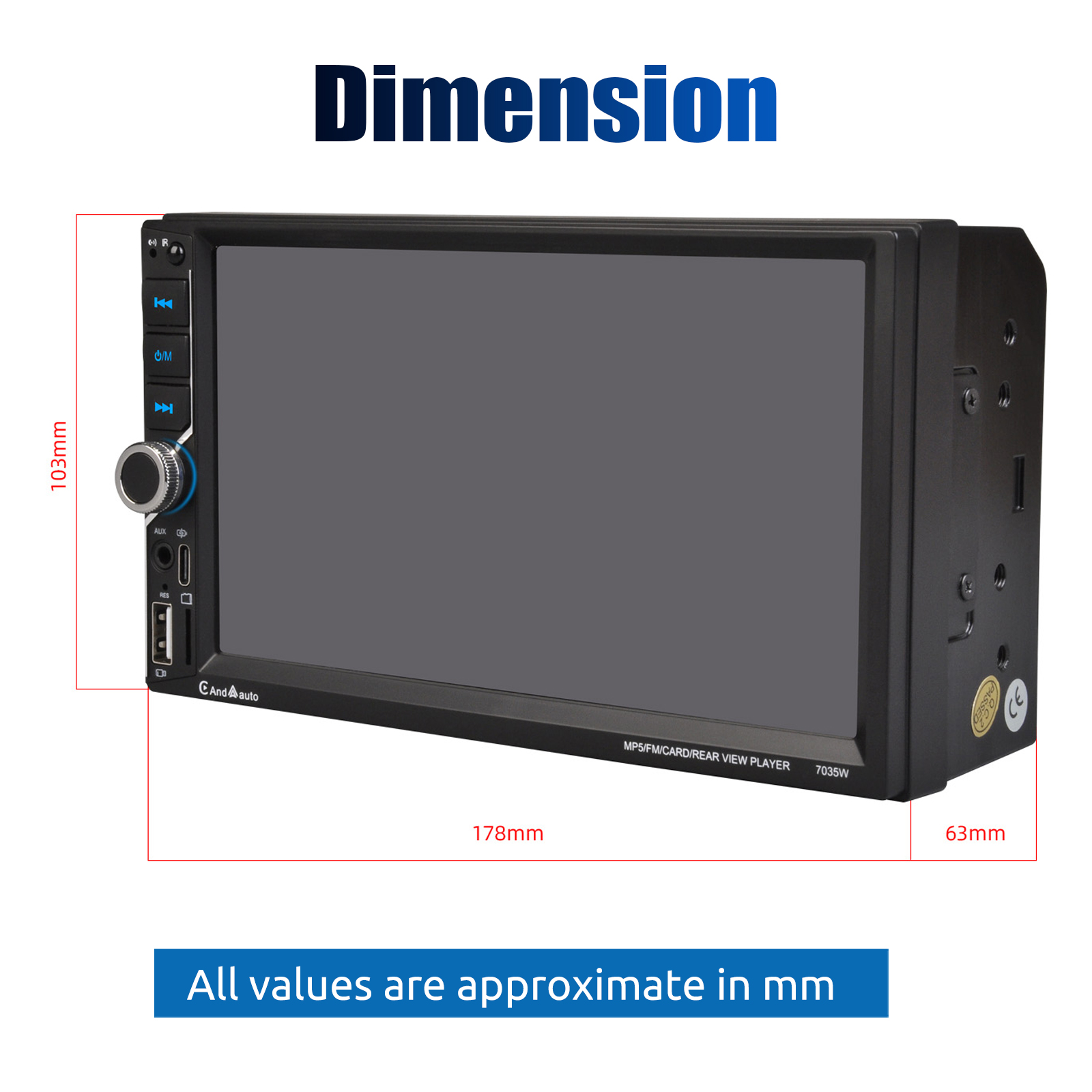 【7-Inch Double Din Touchscreen Car Stereo】7-inch 1024x600 HD capacitive screen designed. Universal double din standard size 7.0 inch×4.0 inch×2.4 inch,Installation size 100*178MM to fit most vehicles. Our double din stereo is equipped with a 7-inch HD capacitive touch screen and it makes more sensitive and accurate.