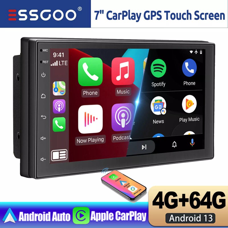 ESSGOO 4G+64G Android 13 CarPlay 7 Inch Double 2 DIN Car Stereo GPS Radio Touch Screen