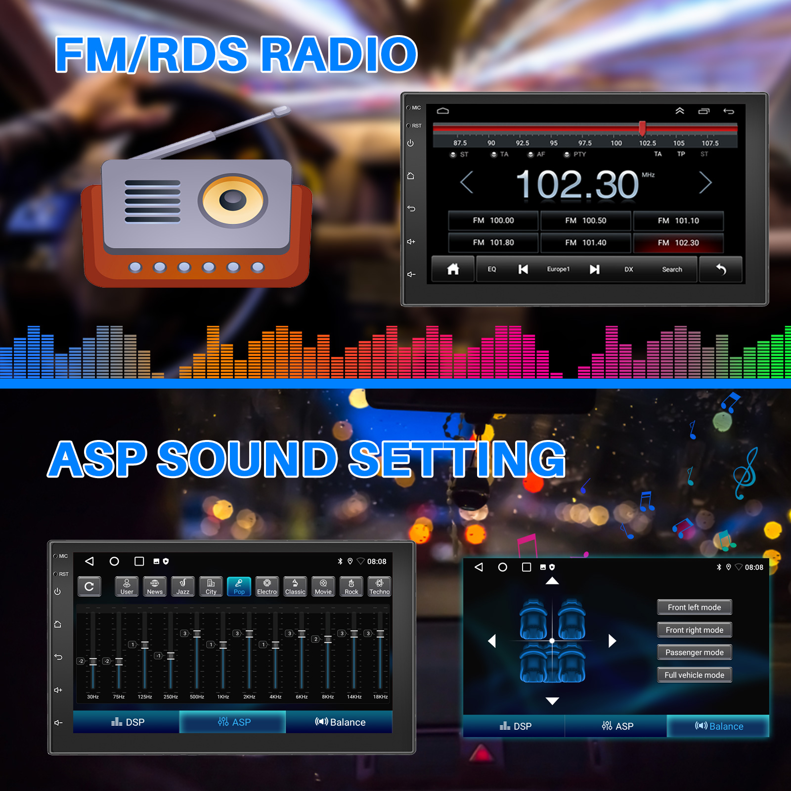 RDS/FM Radio & Bluetooth: Built-in Bluetooth 4.0 with A2DP, supports Bluetooth hands-free calling, phone book call log downloading, music audio streaming. Built-in microphone to make calls clearer. FM/RDS radio can preset 30 popular stations with high stereo quality, it can search for channels fully automatically, semi-automatically and with fine tuning.