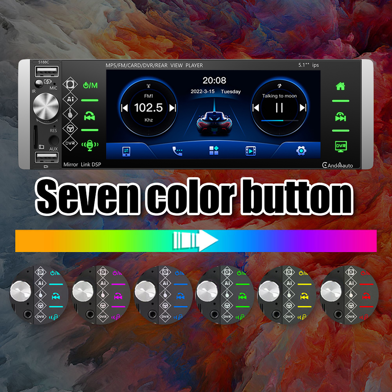 【Supports Seven Colors】 Our product has seven color functions, allowing you to customize your experience with a range of dynamic visual effects. With just the touch of a button you can switch between different colors and modes, creating a truly unique and engaging experience. So why settle for a simple and boring car stereo when you can have one with seven colors? Try it today and see the difference for yourself!