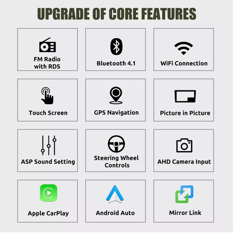 RDS/FM Radio & Bluetooth & ASP Sound Setting: Supports Bluetooth 4.1, with built-in microphone so you can make hands-free calls while driving. Support access to phone book, music playback interface, etc. RDS supported. You can save 18 FM radio stations. Built-in ASP chip. Supports 32-band EQ setting, which can be adjusted according to your personal preference. Which is very similar to your original sound. 4 x 45W amplifier, surround sound and subwoofer output