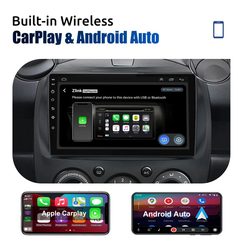 ESSGOO 9" Android 14.0 Carplay Car Stereo Radio GPS Navi WIFI BT For 2007-2014 Mazda 2