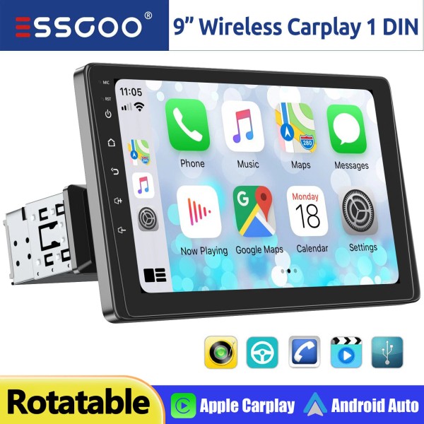 ESSGOO 9" Single DIN Android Auto Car Stereo Apple Carplay USB AUX Touch Scre...