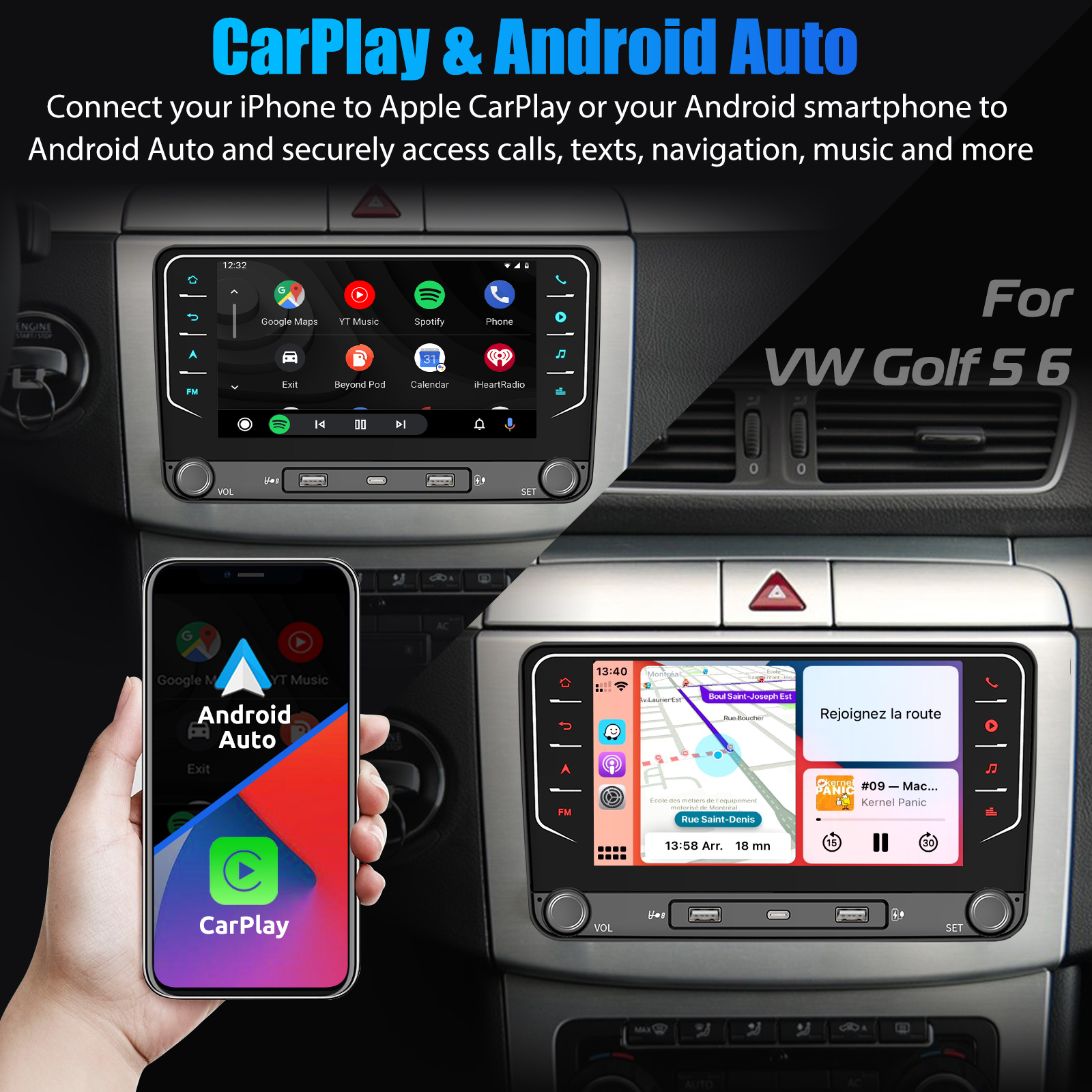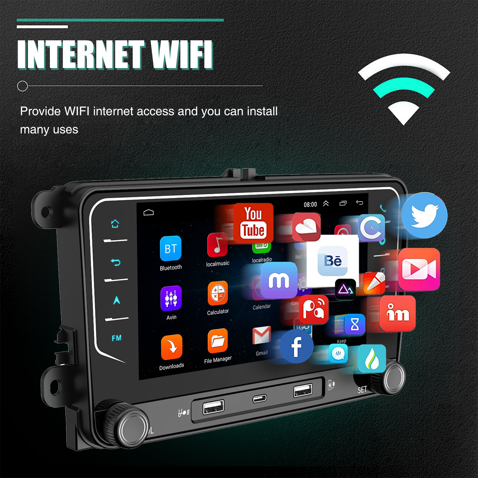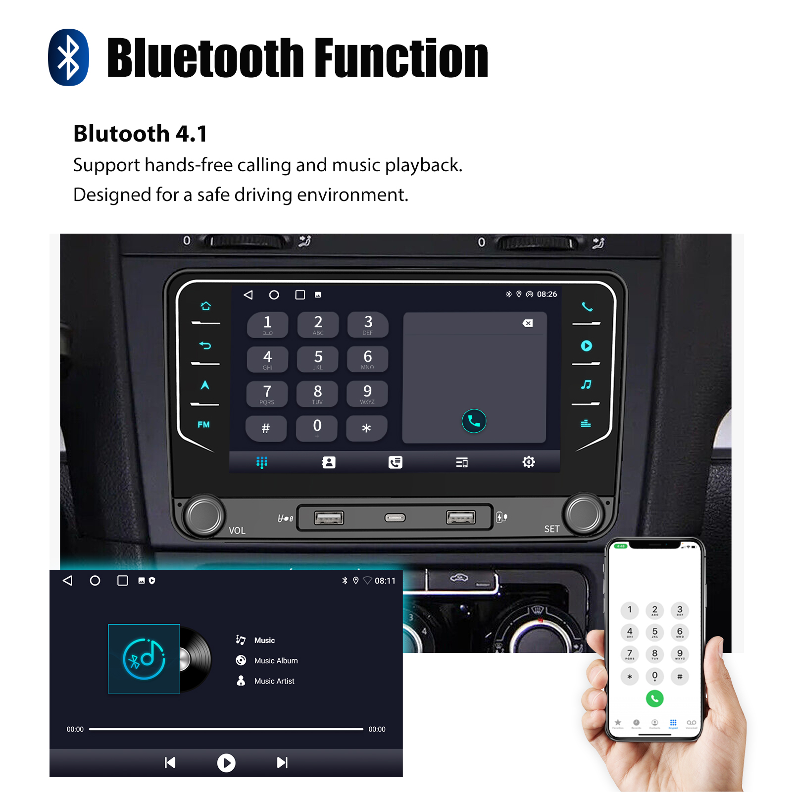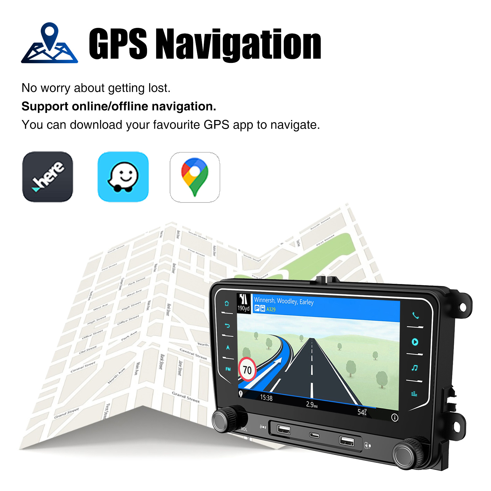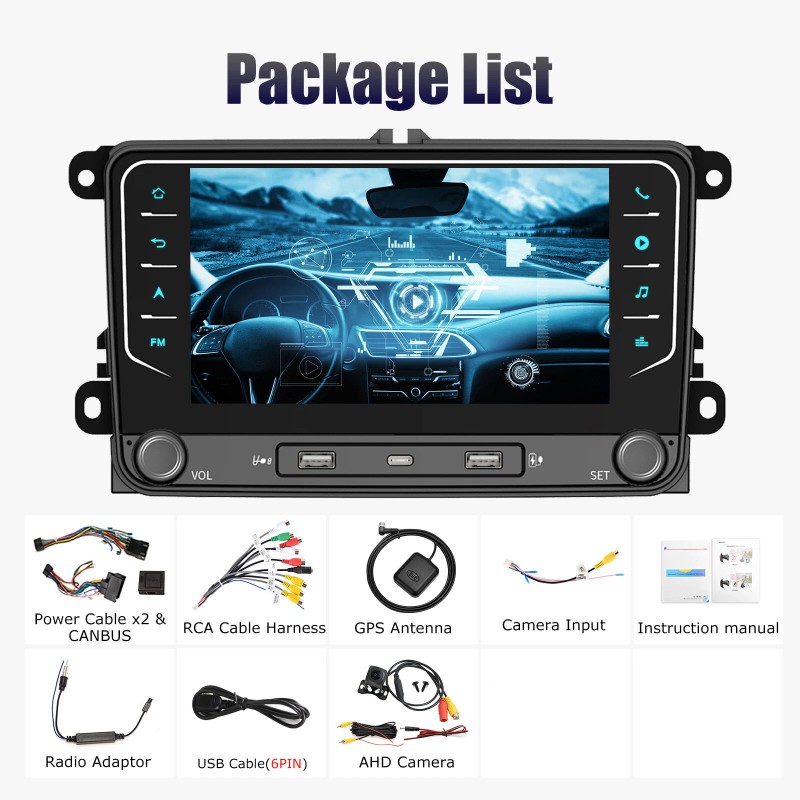 7 Inch Android 14 Car Radio VW/PASSAT/GOLF/SEAT/SKODA/POLO: The Android car radio with 7" 1024*600 HD capacitive touch screen, toush sensor key, 2GB RAM and 64GB ROM allows you to download your favorite apps and videos, so that driving will never be boring .No additional frame, no cable change, plug and play.