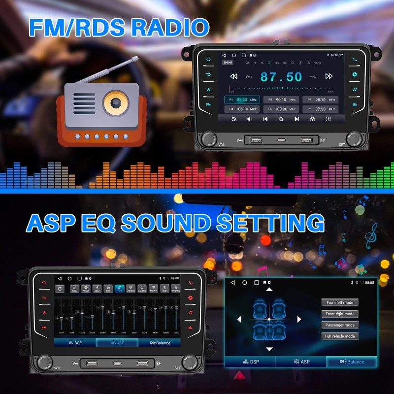 RDS/FM Radio & Bluetooth & ASP Sound Setting: Supports Bluetooth 4.1, with built-in microphone so you can make hands-free calls while driving. Support access to phone book, music playback interface, etc. RDS supported. You can save 18 FM radio stations. Built-in ASP sound processing. Supports 32-band EQ setting, which can be adjusted according to your personal preference. Which is very similar to your original sound. 4 x 45W amplifier, surround sound and subwoofer output