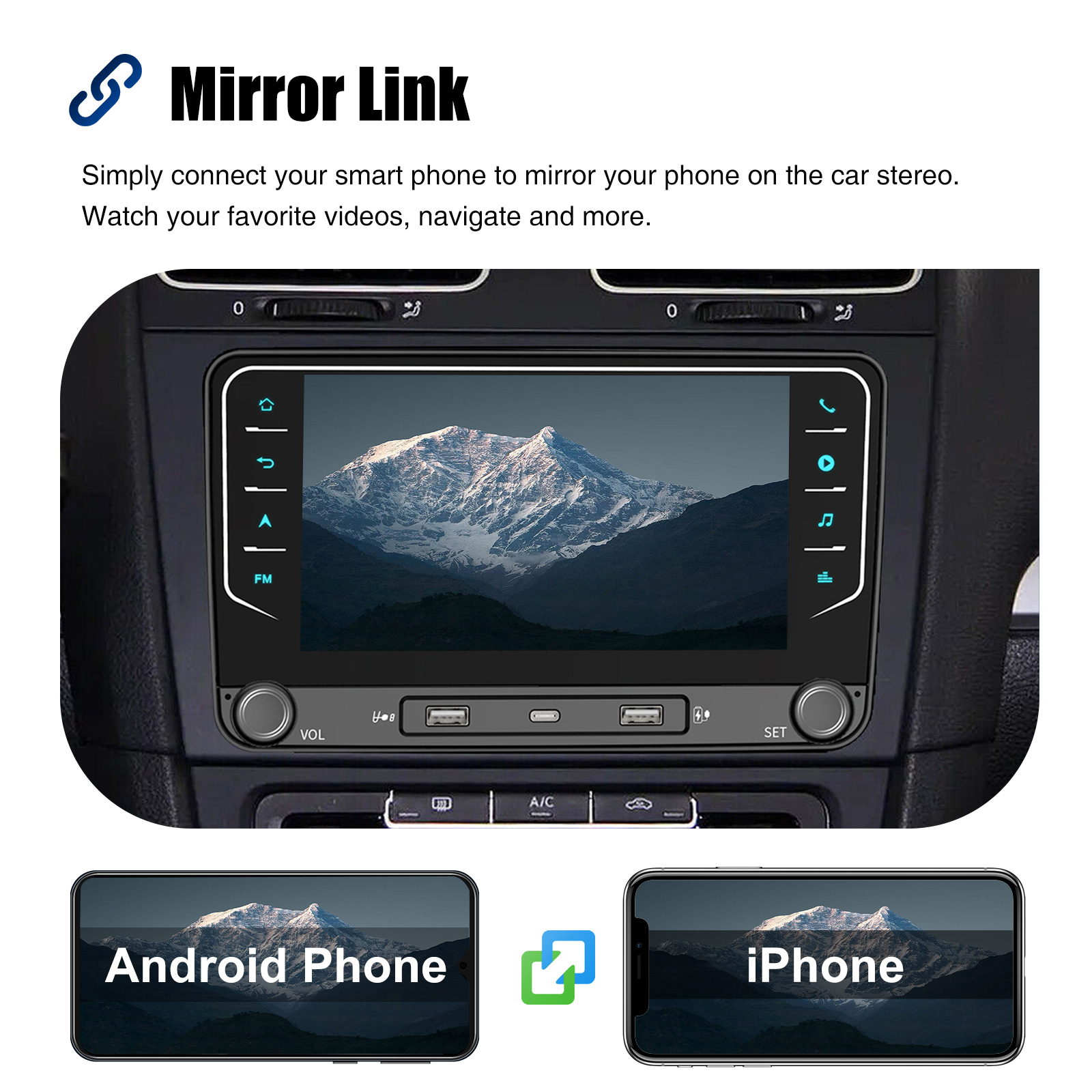 Mirror Link: With this car radio, you can experience the amazing Mirror Link function, compatible with iOS and Android phones. You can mirror your smartphone screen to the car radio using apps like Google Maps, Spotify, Youtube, etc. Replace your cell phone with the car screen and turn your vehicle into a smart platform.