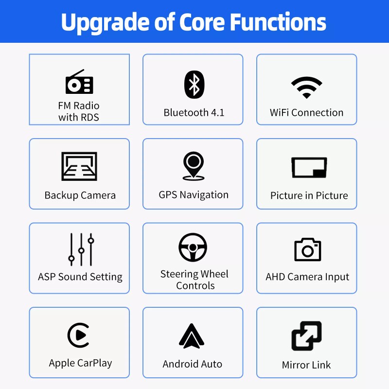 RDS/FM Radio and Bluetooth and ASP Sound: Supports Bluetooth 4.1, with built-in microphone so you can make hands-free calls while driving. Support access to phone book, music playback interface, etc. RDS supported. You can save 18 FM radio stations. Built-in ASP chip. Supports 32-band EQ setting, which can be adjusted according to your personal preference. Which is very similar to your original sound. 4 x 45W amplifier, surround sound and subwoofer output