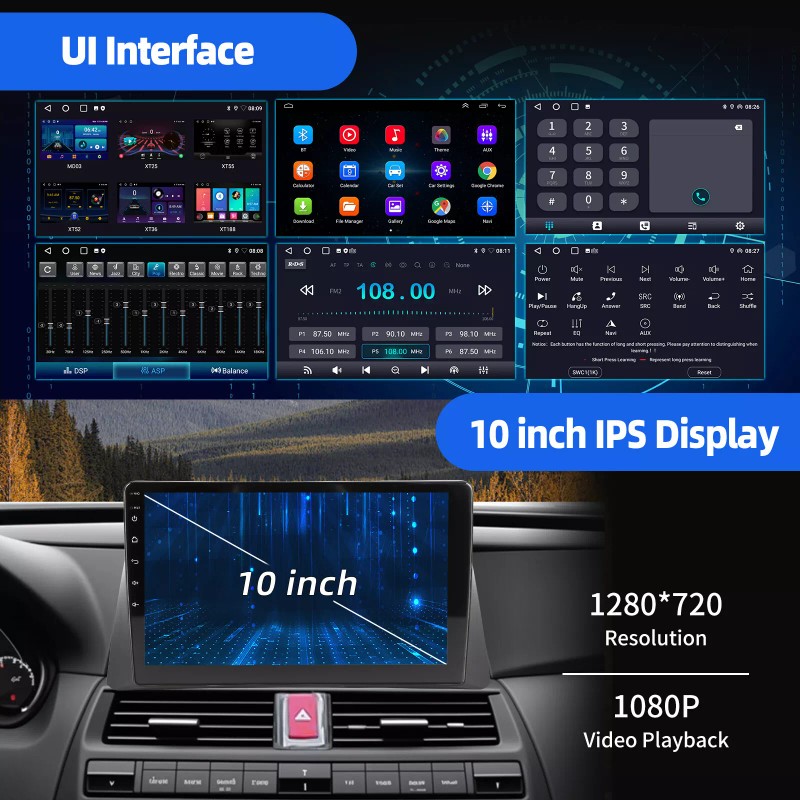 10.1 Inch Android 14 Car Radio For Honda Accord 8 2008-2013: The Android car radio with 10.1" 1280* 720 IPS capacitive touchscreen, 1GB RAM and 32GB ROM allows you to download your favorite apps and videos, so driving is no longer boring. No extra frame, no cable change, plug and play.