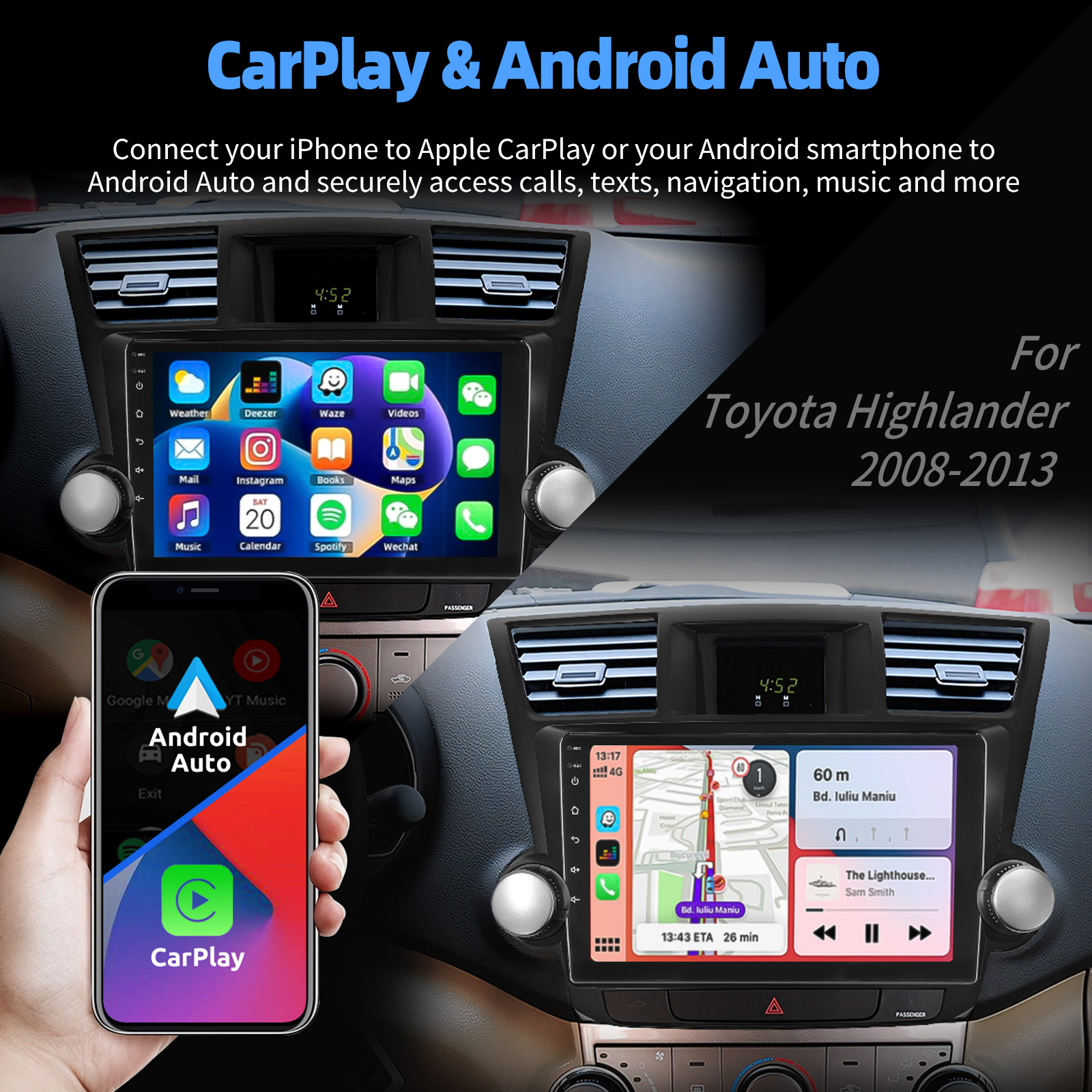 ESSGOO Android14 Head Unit For Toyota Highlander 2008-2013 Car Stereo with GPS &CarPlay