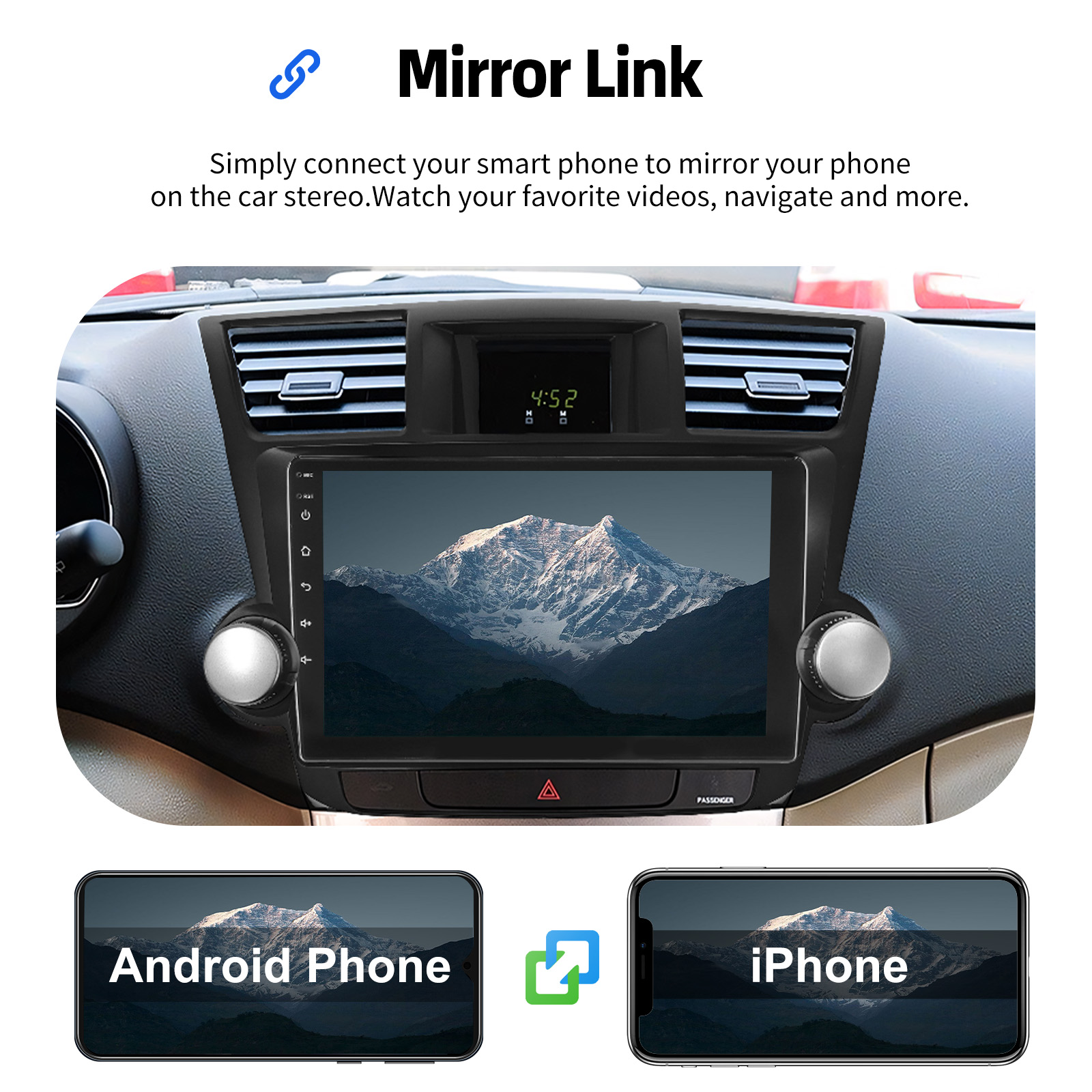 - Mirror Link: Mirror Link & Wireless Carplay & Android Auto