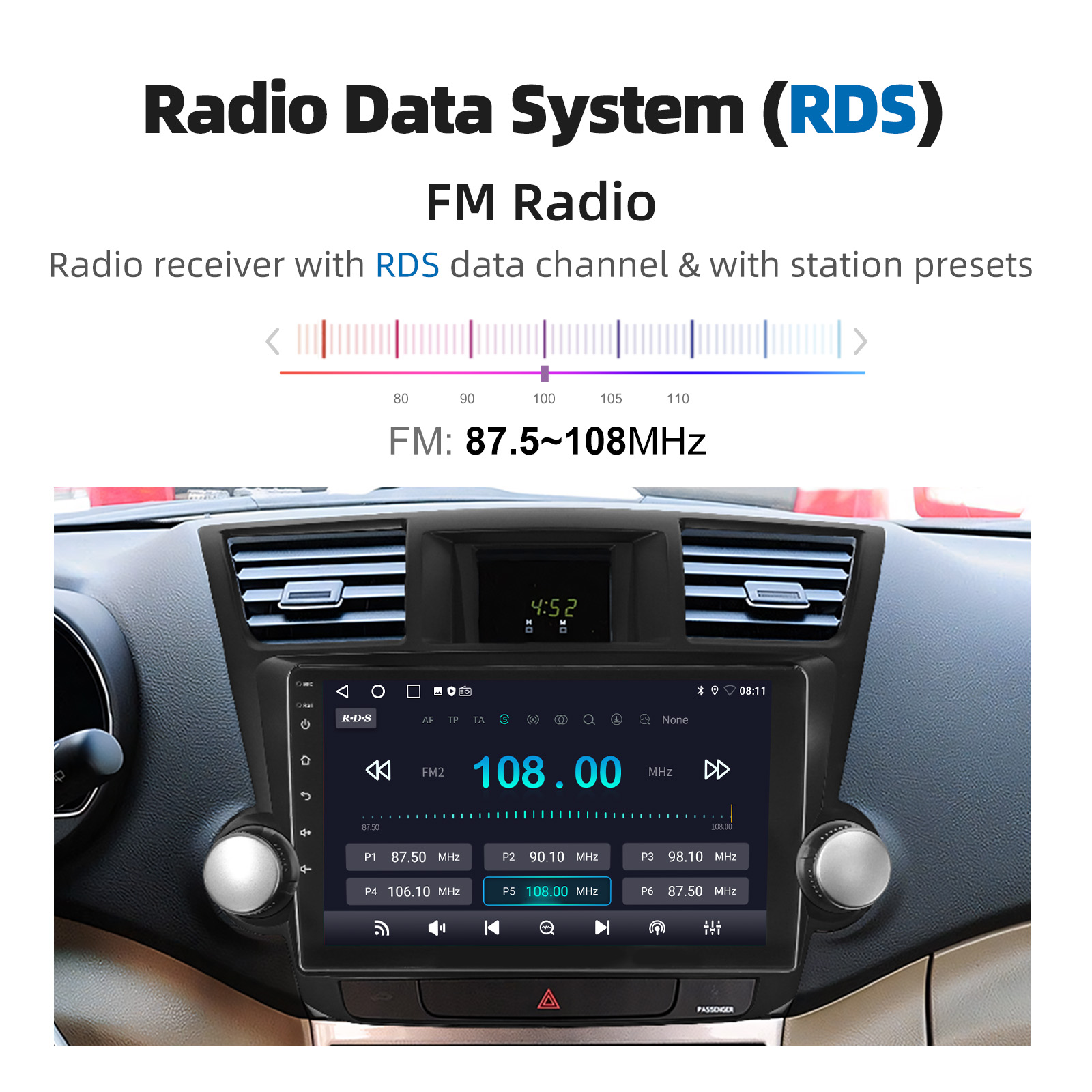 Radio Data System (RDS): RT, AF, TA provides all the FM channel information you need(europe).