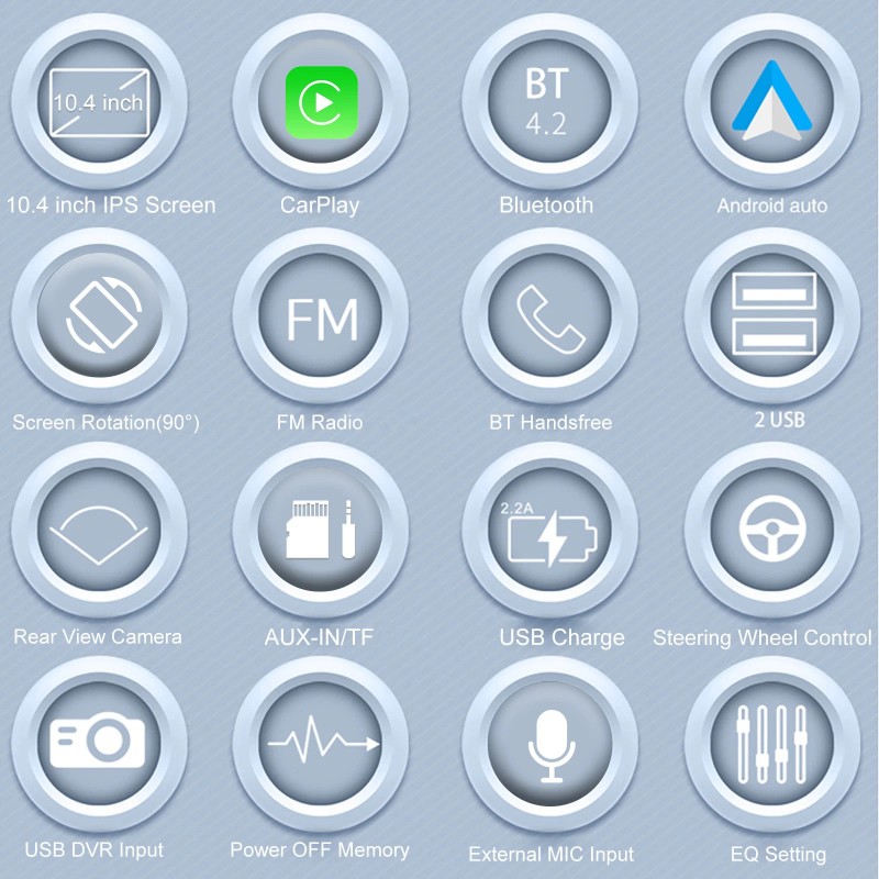 【Single-Din Multimedia Radio】 Car radio screen size 215mm (L) *135mm (W), installation size:179mm (L) *70mm (W) *52mm (H),10.4-inch HD video, manually Rotate high-resolution capacitive IPS touch screen, sensitive operation. The car player interface contains a file manager. Supports U-disk/USB/TF card input