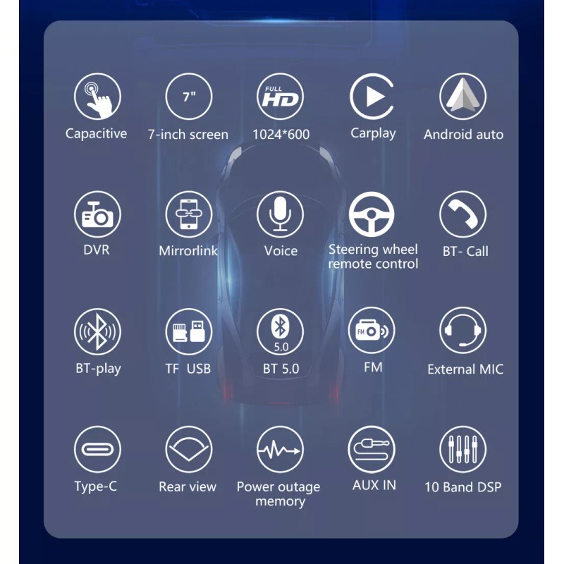 Function support: MP5/reverse/Bluetooth/mobile phone interconnection/wired and wireless carplay/wired and wireless Android auto