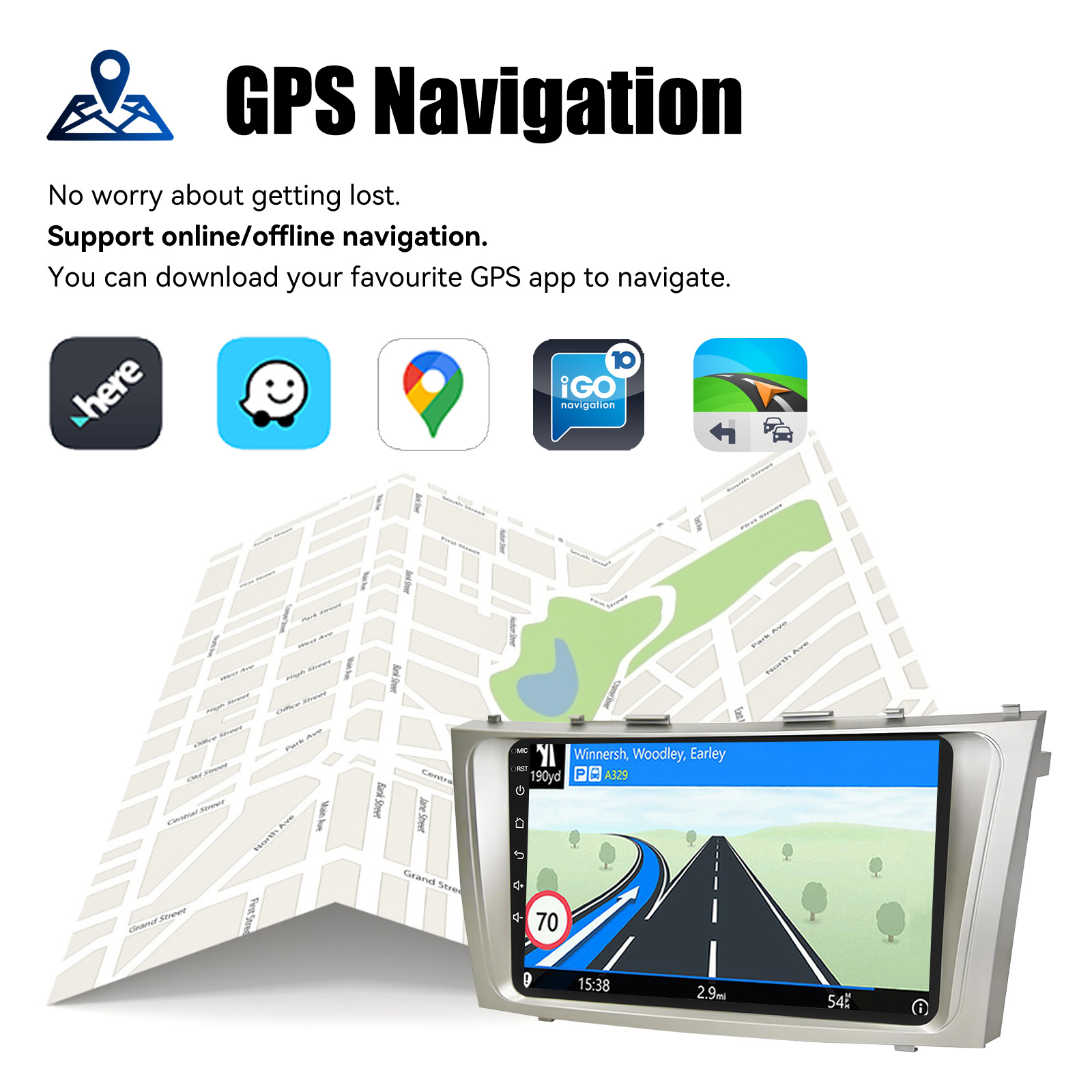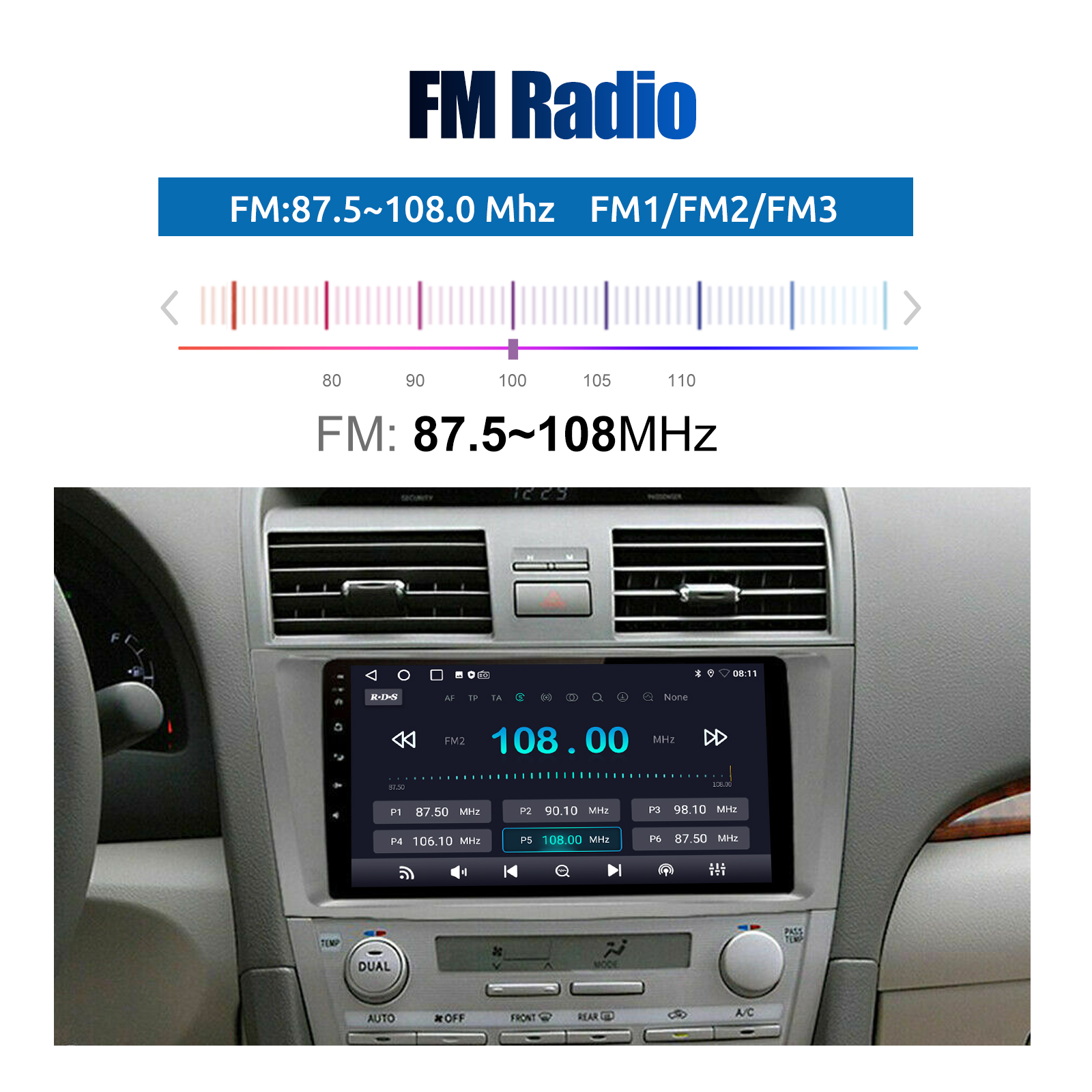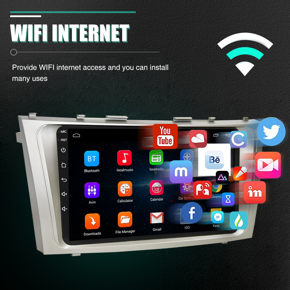 9 Inch Android 13 Car Radio For Toyota Camry 2007-2011: The Android car radio with 9" 1280* 720 HD capacitive touchscreen, 1GB RAM and 32GB ROM allows you to download your favorite apps and videos, so driving is no longer boring. No extra frame, no cable change, plug and play.