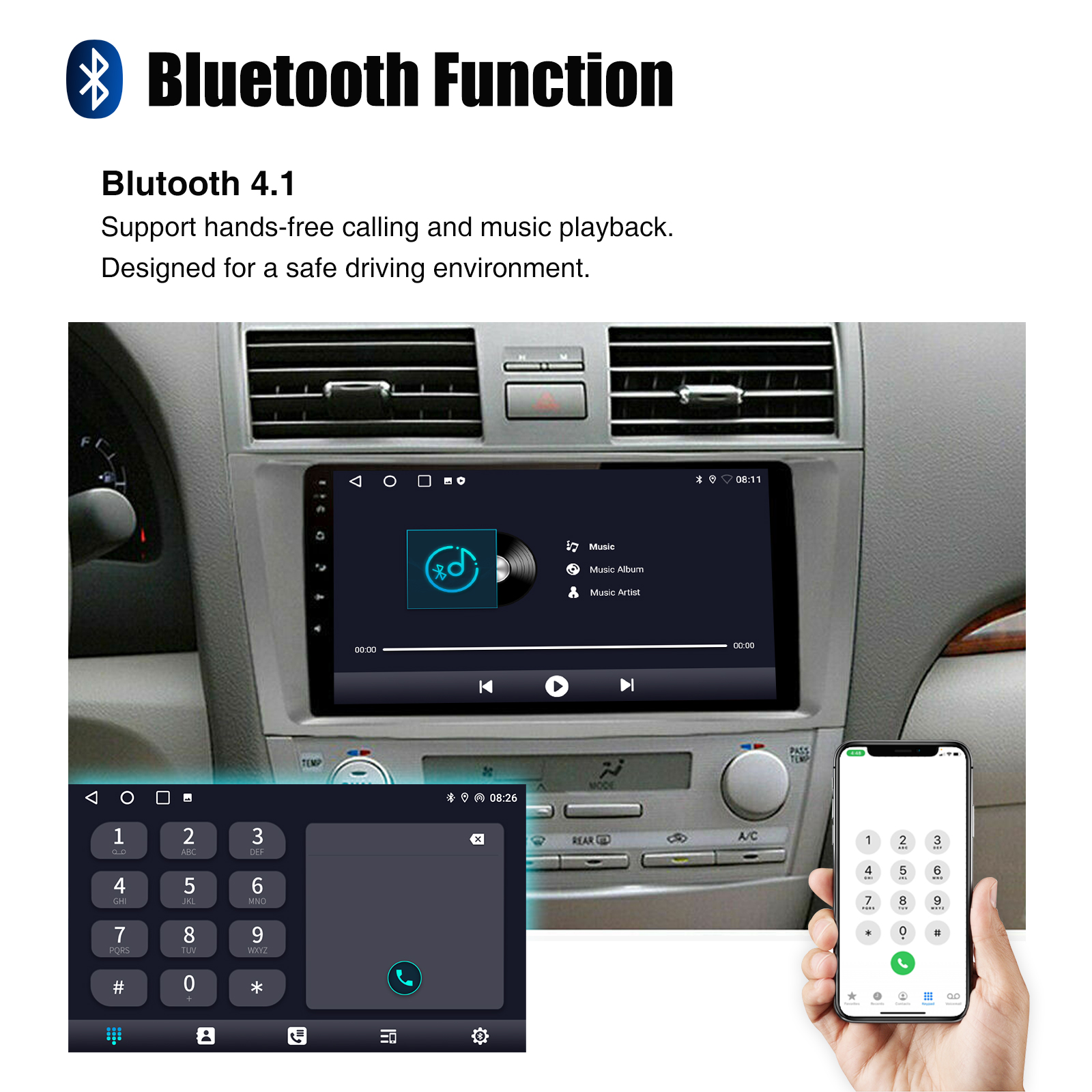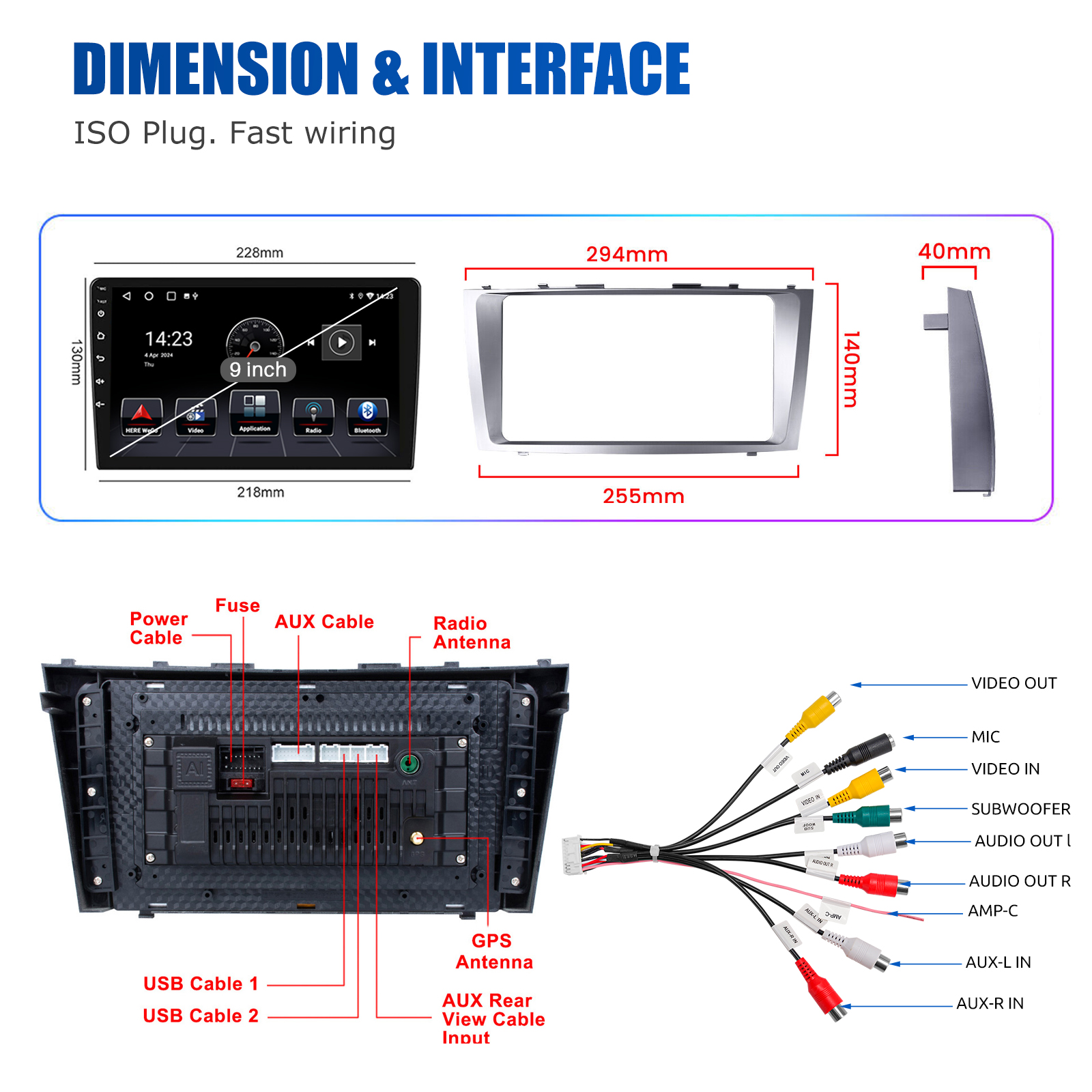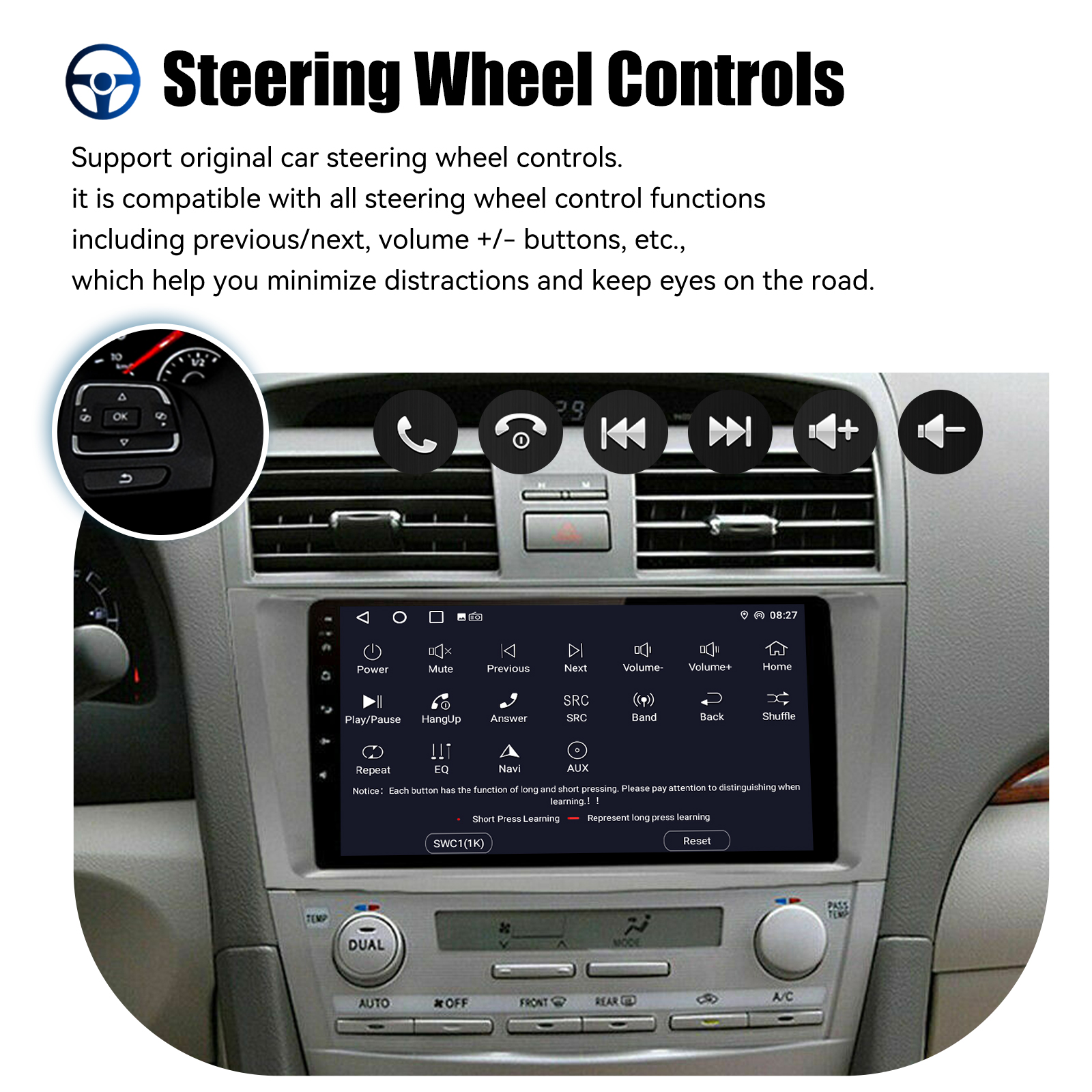 9 Inch Android 13 Car Radio For Toyota Camry 2007-2011: The Android car radio with 9" 1280* 720 HD capacitive touchscreen, 1GB RAM and 32GB ROM allows you to download your favorite apps and videos, so driving is no longer boring. No extra frame, no cable change, plug and play.