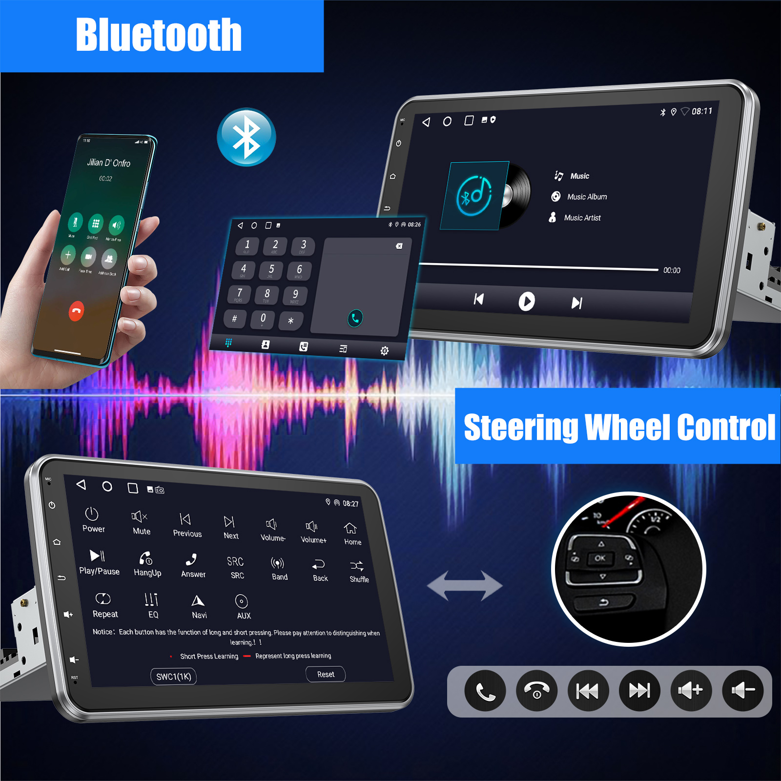 ESSGOO Single 1DIN Rotatable 10.1" Android 14 Touch Screen Car Stereo Radio GPS Wifi BT