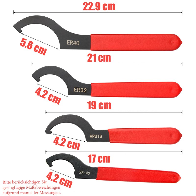 - Suspension System Comprehensive Set: Includes wrenches in different sizes for adjustable coilovers. You will receive 4 wrenches, 38-42 wrenches, APU16 wrench, ER32 wrench, ER40 wrench and a pair of non-slip nylon gloves
