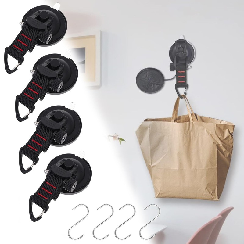 Esshogo Suction Cup Anchor with Attachment Hook Tying 4 Pieces Suction Cup Hooks Camping for Caravan Household Workshop Suction Cup Mounting Hooks