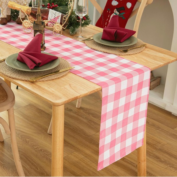 Essifunia Waterproof Checkered Tablecloth Runner Fabric - Rectangle 12x108 Inch Classic Gingham Buffalo Plaid Table Cloth for Indoor/Outdoor Use - Table Cover for Kitchen, BBQs, and Parties