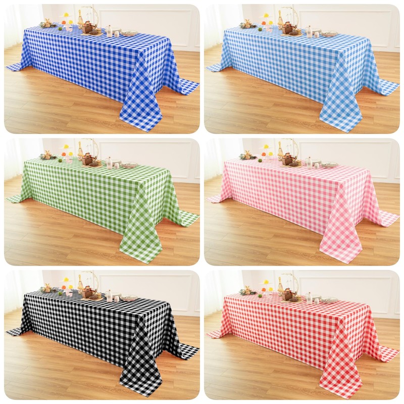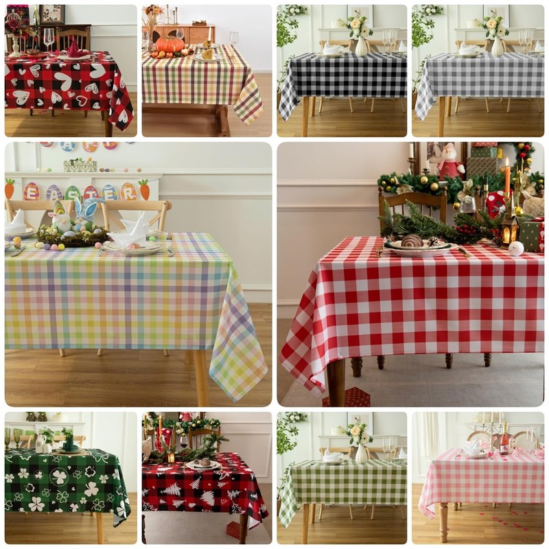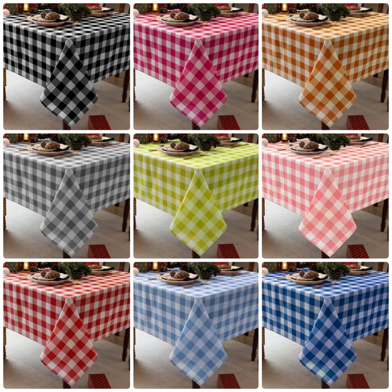 • CLASSIC GINGHAM CHECKERED DESIGN: Our checked tablecloth features a pattern of small, evenly spaced checks in two contrasting colors, often white and another color. The classic gingham plaid pattern for table cloth is a timeless and versatile choice