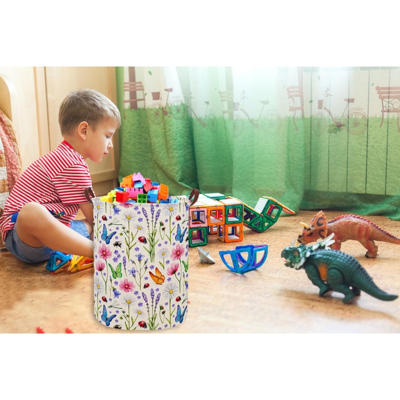 Essme Kids Laundry Basket,Flower Hamper Collapsible Canvas Waterproof Storage Bin for Form, Nursery Hamper,Gift Baskets,Toy Bins(Flower Cluster)