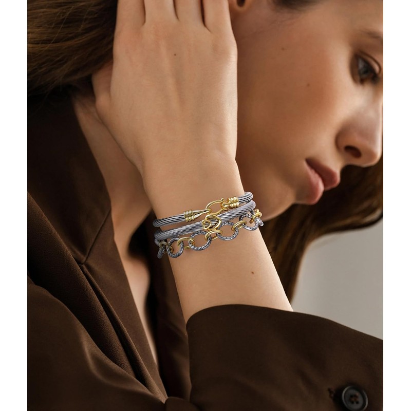 - Three Bold Designs in One Set: This trio has it all: Open-cuff twisted cable with a bold gold cross for a touch of faith-inspired edge. Closed-loop twisted cable with a gold circular clasp for classic cool. Interlinked two-tone chain for that laid-back, stacked vibe. Mix, match, or wear solo—so many ways to style these pieces.