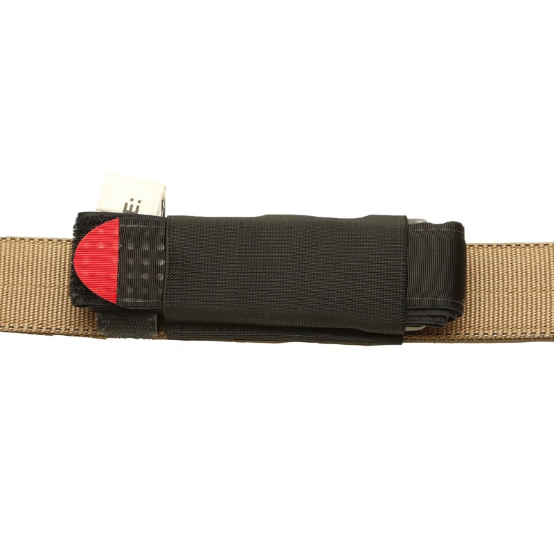- Hook and loop closure system allows holder to be securely attached to a variety of belt sizes