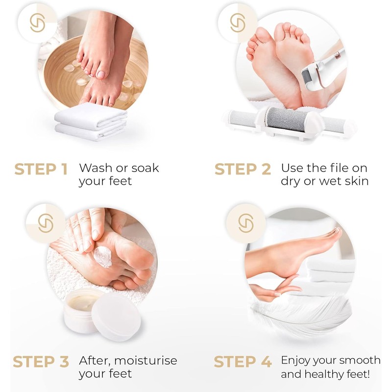 - EFFICIENT SKINCARE DEVICE FOR YOUR FEET: Want to have silky, smooth feet? Tired of wasting time and money on salon appointments? Treat your feet effortlessly yet effectively with a professional procedure anytime, anywhere. The Essy Premium Electric Foot File hard skin remover has 3 types of chargeable rollers to suit your needs: a fine roller for thin layer of dead skin on the feet, a regular roller for thicker layer and a coarse roller for thick layer, cracked heels or troublesome calluses.