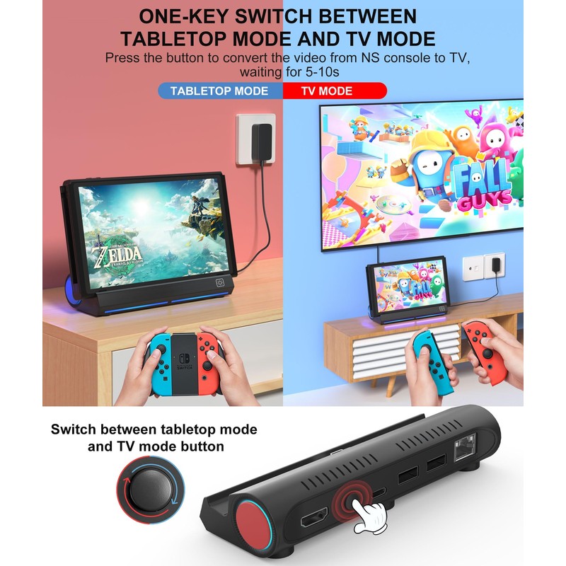 Estación de muelle de TV compatible con interruptor/interruptor OLED de repuesto compatible con base de interruptor oficial, estación de acoplamiento de interruptor compatible con salida 4K