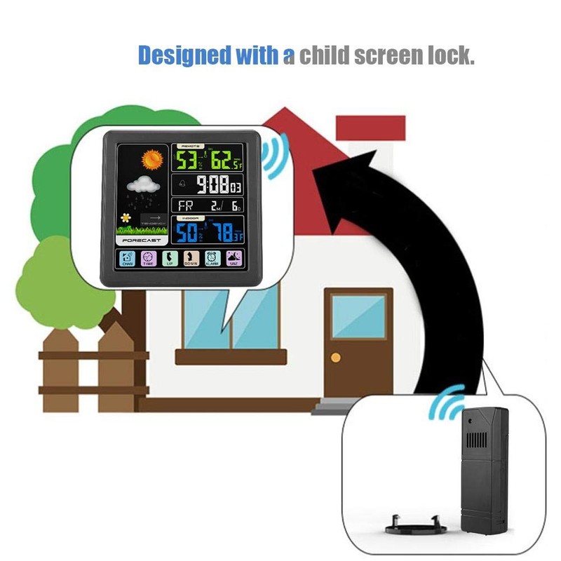 Estación meteorológica inalámbrica con reloj despertador, termómetro digital para exteriores, higrómetro, medidor de humedad con iconos meteorológicos, pronóstico del tiempo(Negro)