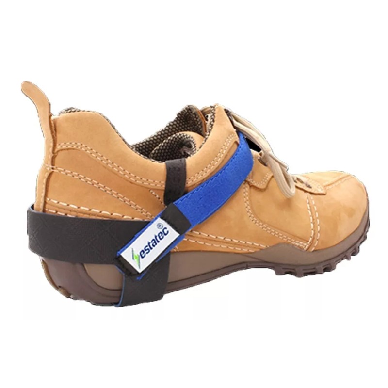La talonera Estaheel es utilizada en el talón del calzado, la cual, mediante una cinta y un hule, pone al cuerpo humano en contacto con el suelo para permitir el paso de cargas electrostática.
