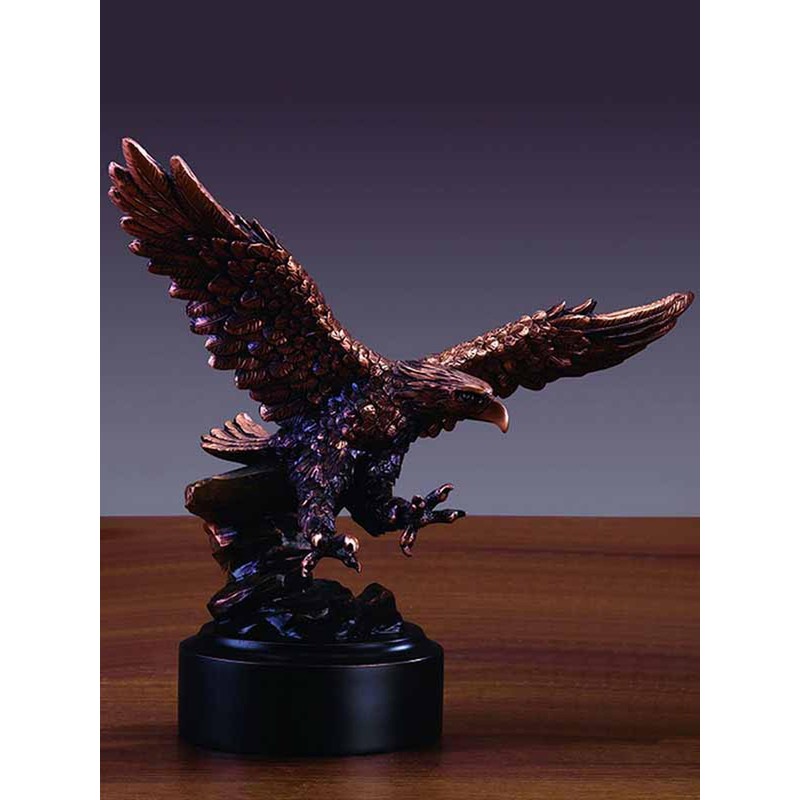 Estatua de águila americana voladora con acabado de bronce, escultura