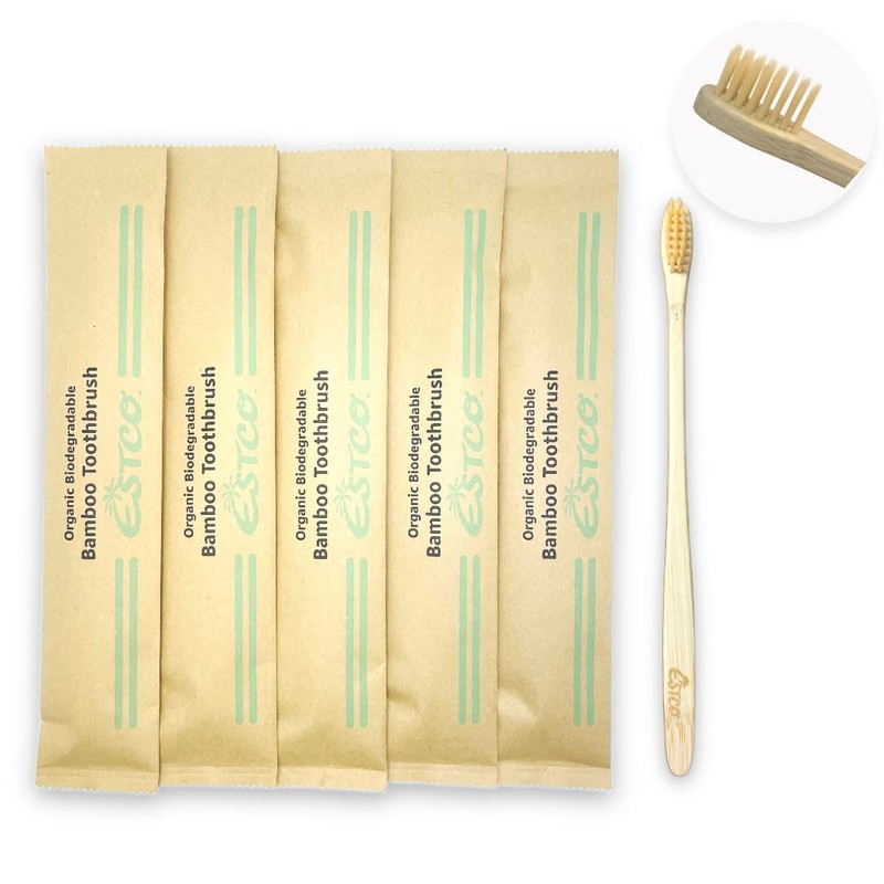 ESTCO. オーガニック竹歯ブラシ バンブー 竹 歯ブラシ エコ ヘッド小さめ 竹歯ブラシ 5本セット
