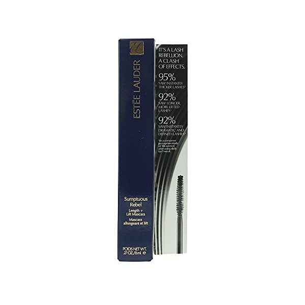 The Este Lauder Sumptuous Rebel 01 Black Mascara is a long lasting mascara, with an excellent sleek brush. The brush delivers a a clean, deep and effective layering of the mascara which defines lashes and lasts for up to 24 hours!
