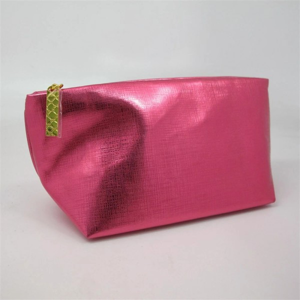 Description: ESTEE LAUDER Metallic Pink Make Up Bag. Measures 8Lx4Hx4W