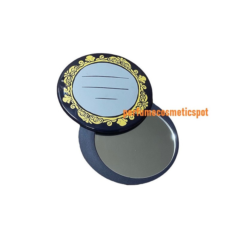 ESTEE LAUDER NAVY WITH YELLOW DESIGNS AROUND SLIDING ROUND COMPACT MIRROR 3"