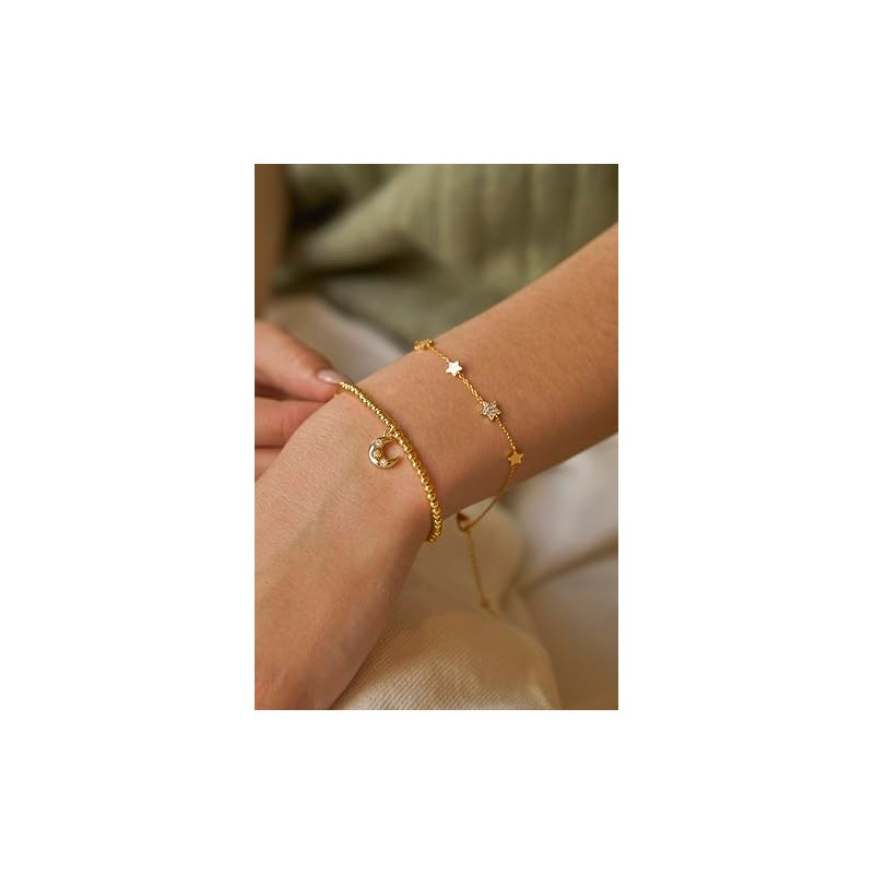 - Featuring a beaded bracelet and a moon charm adorned with clear cubic-zirconia stones