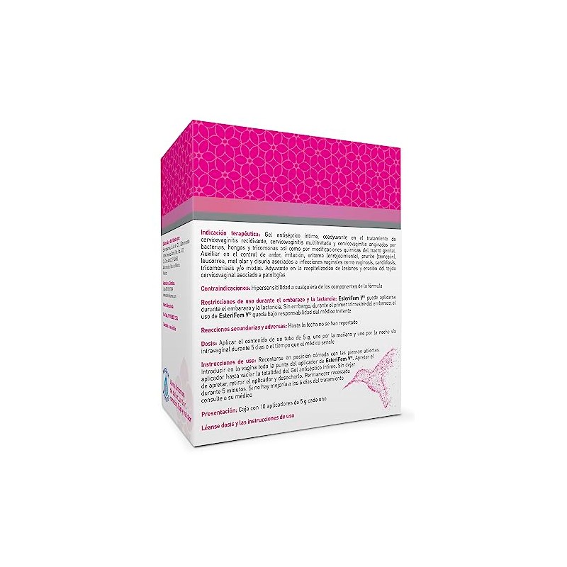 Esterifem V Gel Intimo Antiséptico para Infecciones Vaginales con 10 Aplicadores de 5g