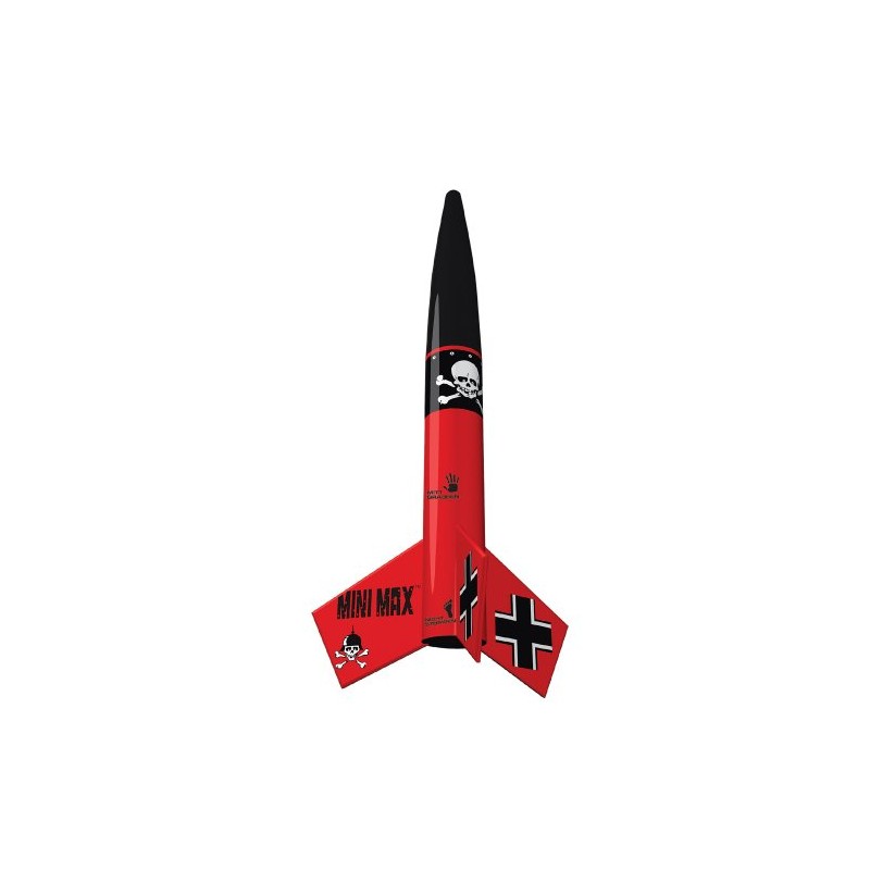 Since the Der Red Max is so extremely popular, we've created another smash hit with a smaller version of the Estes classic. Just like the Der Red Max, the Mini Max is uniquely designed. It has the same ballistic shaped nose cone and stubby fins as its bigger counterpart. Standing almost 10 " tall, this miniature version definitely has a personality all its own. Powered by Estes mini engines, it can reach amazing heights of 400 ' . After its aerial assault, recovery is accomplished with a high-viz streamer. This Skill Level 1 kit is great for beginners. You'll need construction tools, finishing supplies and Estes launch supplies, all sold separately. Recommended for ages 10 and up with adult supervision for those under 12.