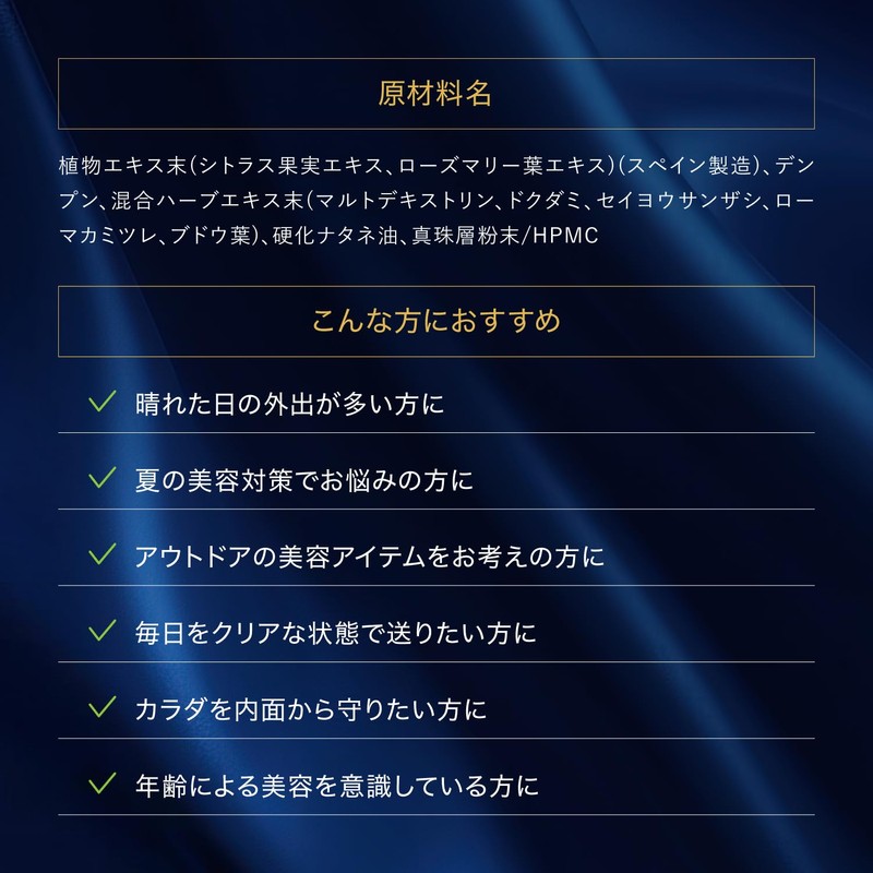- ✅【天然由来成分「ニュートロックスサン」配合】 スペインの地中海沿岸に生息するシトラスとローズマリーから抽出された100%天然由来成分で、内側からの美容ケアをサポートします。