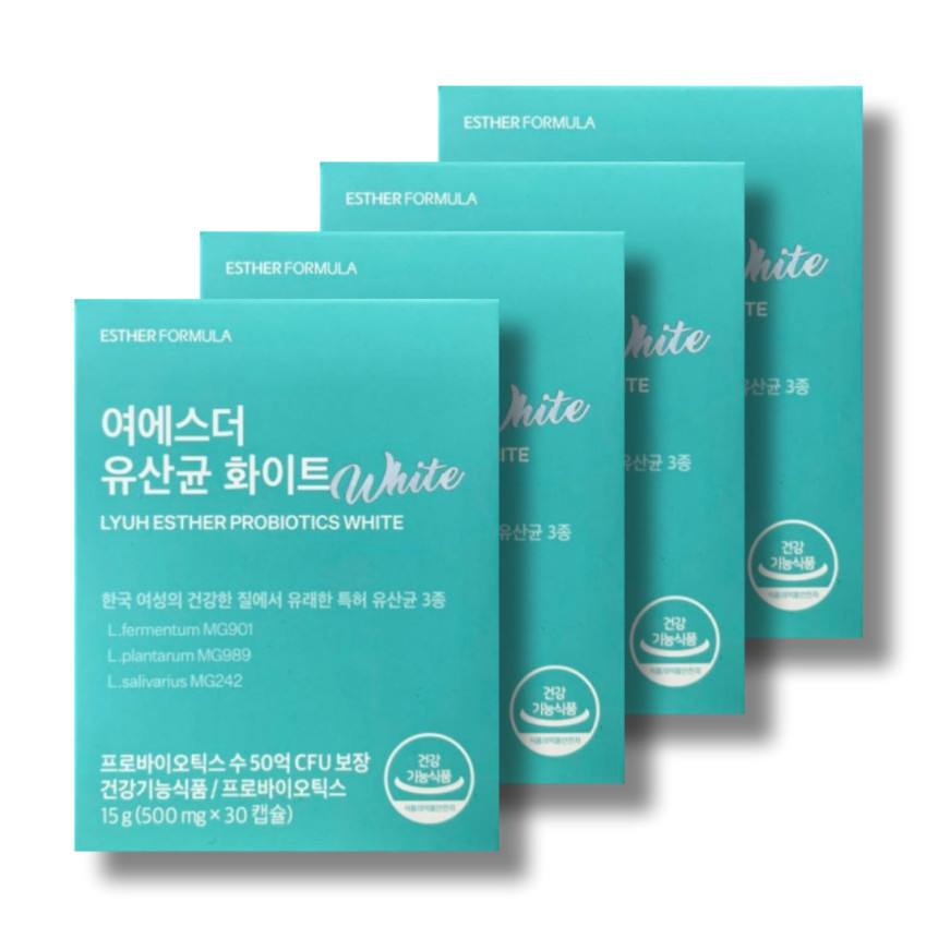 Esther Formula Yeo Esther Lactobacillus White Vaginal Lactobacillus 500mg x 30 capsules, 4 boxes, 4 months supply / 에스더포뮬러 여에스더 유산균 화이트 질유산균 500mg x 30캡슐 4박스 4개월분