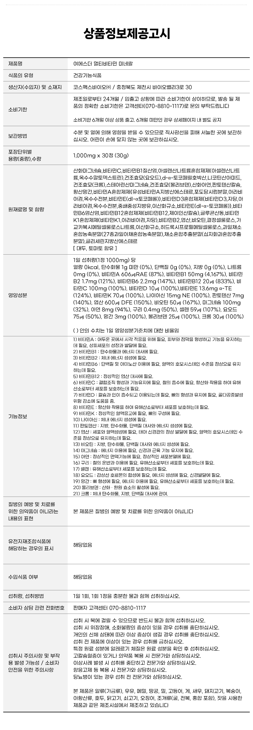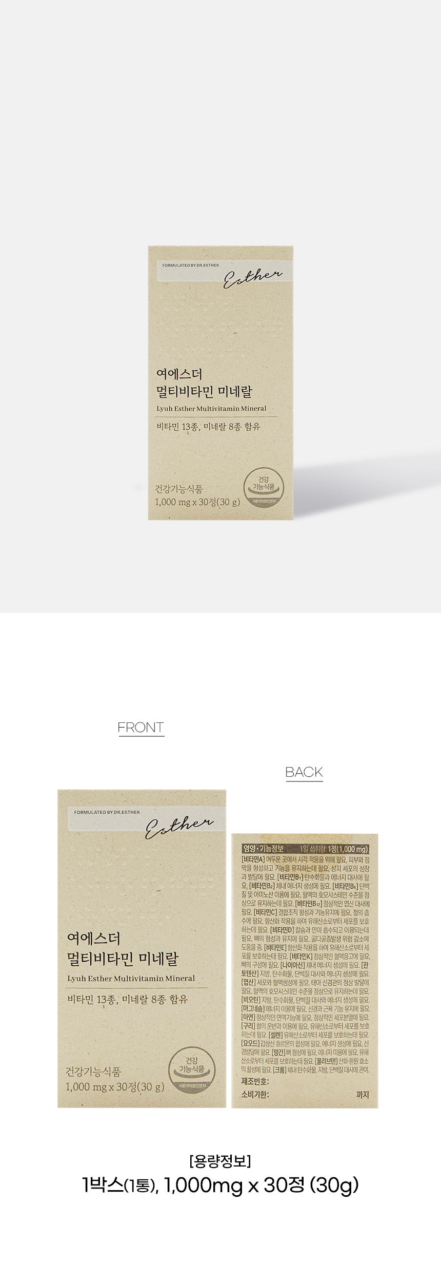 Esther Formula Yeo Esther Multivitamin Mineral 1000mg x 30 tablets x 2 boxes Hb / 에스더포뮬러 여에스더 멀티비타민 미네랄 1000mg x 30정 x 2박스 Hb