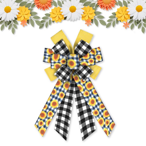 Estivaux Large Spring Summer Bows for Wreath, Sunflowers Wreath Bows Black White Buffalo Plaid Bows Holiday Farmhouse Craft Bows for Front Door Summer Birthday Wedding Party Decorations
