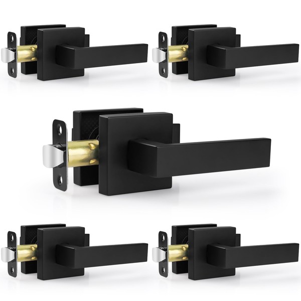 Estmoon 5 Pack Passage Door Handles Matte Black Door Knobs, Interior Door Knobs Square Heavy Duty Non-Locking Handlesets Hall Closet Handles, Reversible for Right & Left Sided Doors